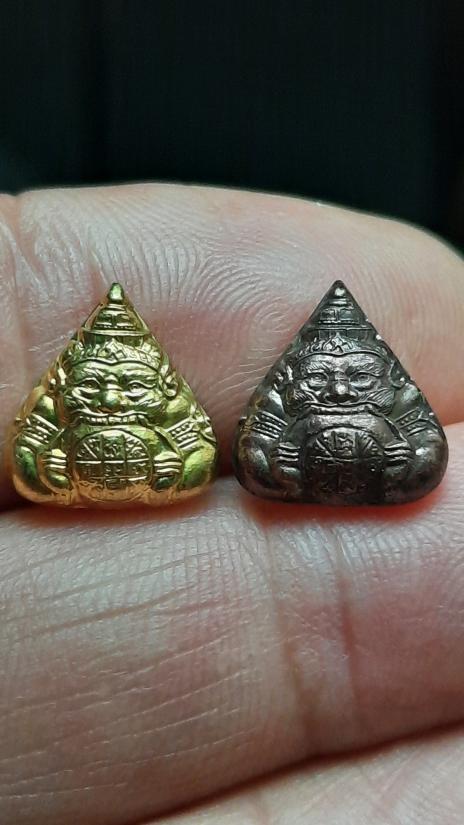 เหรียญ (พิมพ์จิ๋ว)ราหูอมจันทร์ หลังยันต์ วัดสุทัศนฯ ปี 2548 (ชุด 2องค์ เนื้อกะไหล่ทอง,รมดำแก้ชงปีนี้ดี)