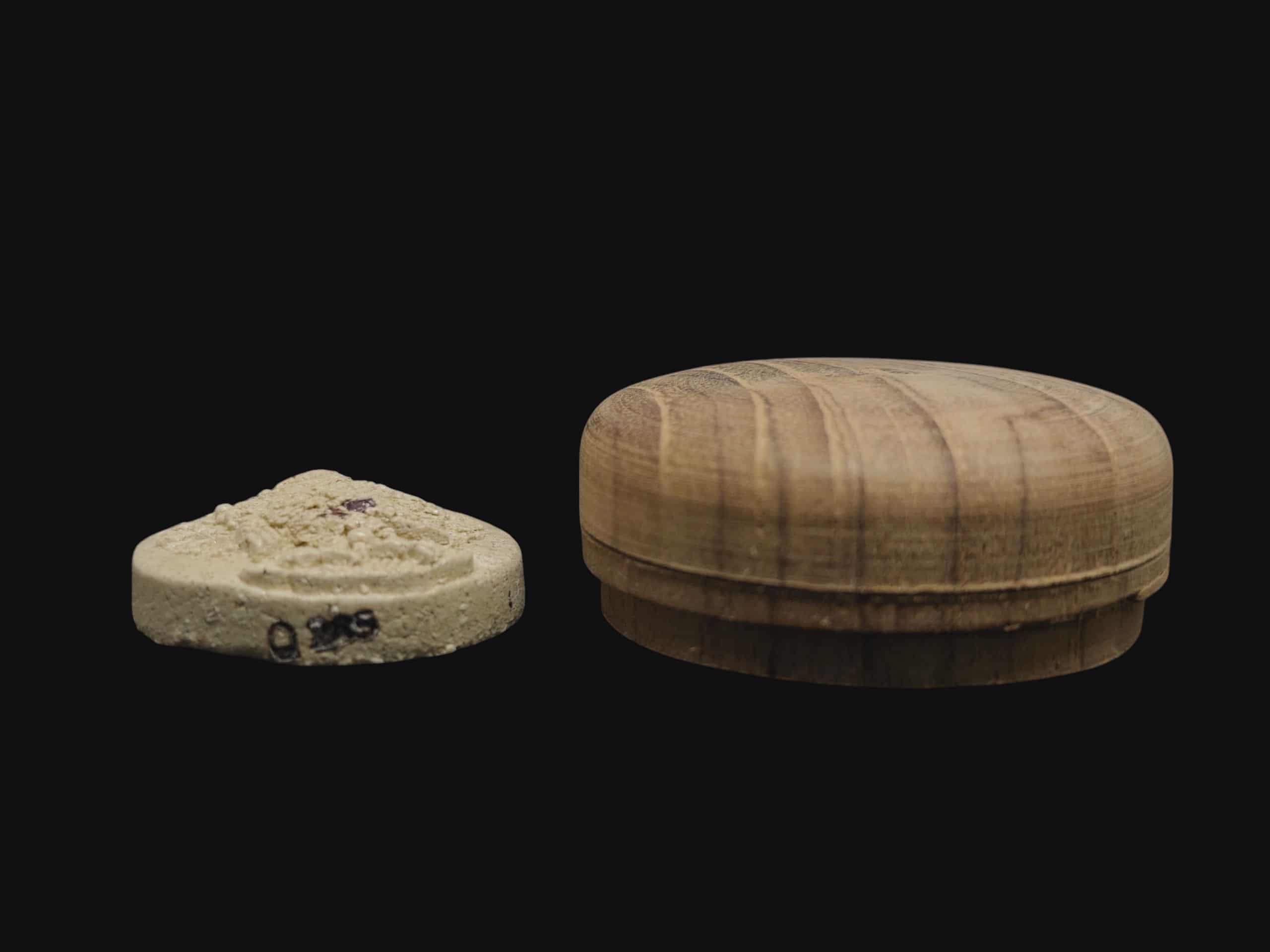พญายูงคำ รุ่นแรก เนื้อเกสรทั้งห้า และ ตลับไม้สีผึ้งเนื้อหอม รังผึ้งร้าง ขวางเดือนขวางตะวัน รุ่นแรก ฝังอิ่น ตะกรุด ในเมตตาบารมี เจ้าปู่จั่นต่า กาวิสาละ พญานกยูง ขนาดเท่าเหรียญสิบบาท