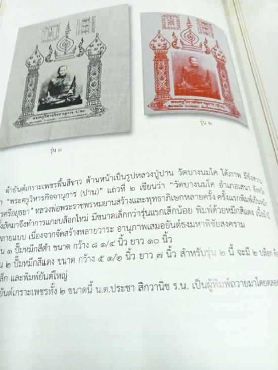 ด้วยผ้าขาวและพิมพ์สกีนรูปหลวงปู่ปานด้วยหมึกสีแดง |