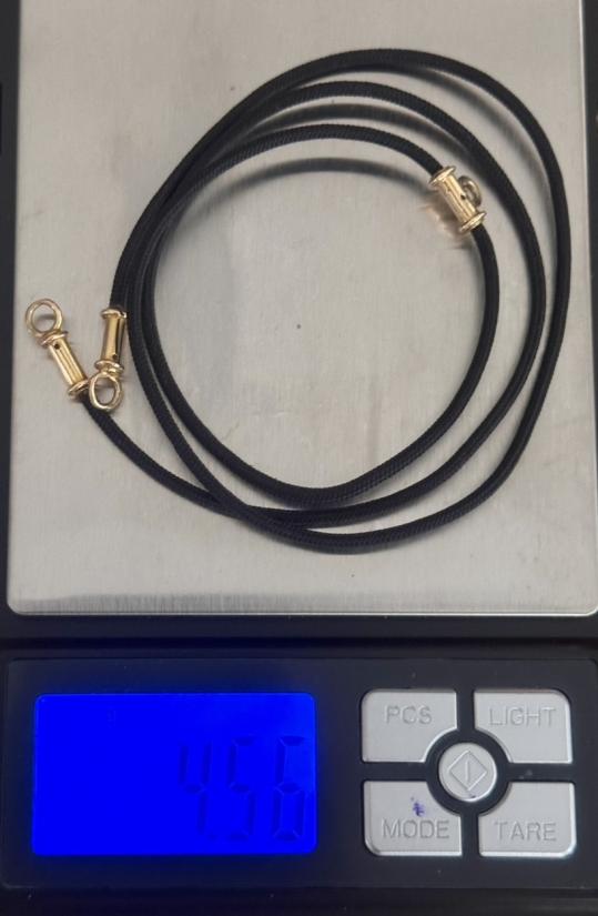 สร้อยเชือกหัวข้อทองคำห้อยพระได้ 3 องค์ ขนาดความยาว 24 เซ็นติเมตร น้ำหนักชั่งรวม 4.56 กรัม ความยาวสวมหัวได้ พร้อมห้อยพระด้านหลังสั่งทำมา 18,300 บาทเอามาแบ่งปัน รับประกันทองคำแท้ %ทองคำ 65%-75% ครับ