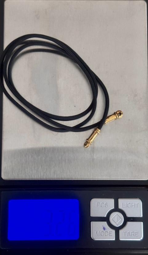 สร้อยเชือกหัวข้อทองคำห้อยพระได้ 1-2 องค์ ขนาดความยาว 24 เซ็นติเมตร น้ำหนักชั่งรวม 3.26กรัม ความยาวสวมหัวได้ เอามาแบ่งปัน รับประกันทองคำแท้ %ทองคำ 65%-75% ครับ