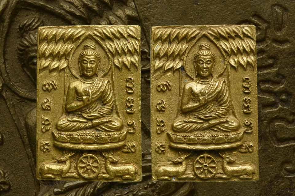 **เคาะเดียว**เเพ็คคู่พระหล่อพิมพ์พระพุทธนฤมิตรโชค หลวงพ่อจรัญ วัดอัมพวัน สิงห์บุรี เนื้อทองเหลืองตอกโค้ต๗๓ สวยมากเดิมๆ