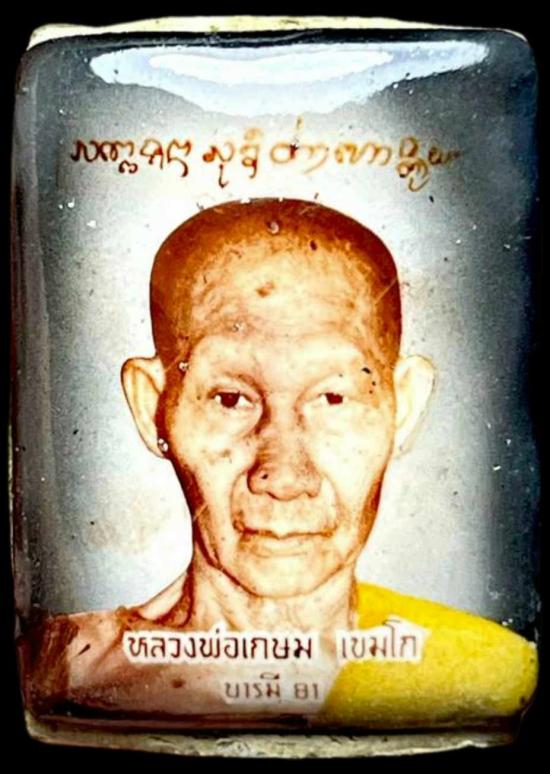 พระผงรูปเหมือนหลังล็อคเก็ต มีจีวร เกศา รุ่นบารมี 81 สร้างปี พ.ศ.2535 กรมตำรวจจัดสร้าง ชนวนมวลสารศักดิ์สิทธิ์ 1. เส้นเกศา ของหลวงพ่อเกษม เป็นที่รู้กันอยู่แล้วว่า เส้นเกศาเป็นของที่สูงที่สุดในร่างกายของมนุษย์เรา โดยเฉพาะเป็นเส้นเกศาของหลวงพ่อเกษมด้วยแล้ว น้อยคนนักที่จะได้ของท่านมาบูชา 2. จีวร สำหรับจีวรของหลวงพ่อเกษม ไม่เหมือนกับจีวรของภิกษุองค์อื่น ๆ ซึ่งใช้อย่างฉาบฉวยชั่วครั้งชั่วคราว พอเห็นว่าเก่าหน่อยก็ทิ้ง แต่ทว่าจีวรของหลวงพ่อเกษมอยู่กับตัวท่านจนหาที่ปะแทบไม่ได้ เป็นจีวรที่รับใช้ซับเหงื่อไคล คุ้มร้อนคุ้มหนาวให้แก่ท่านและปกติหลวงพ่อก็อาบน้ำน้อย ปีหนึ่งอาบน้ำอย่างมากก็ราว 2-3 ครั้งเท่านั้น น้ำเหงื่อไคลนี้จะเกิดก็ตอนท่านเข้ากรรมฐาน 3. ก้านธูป จากกระถางธูปของหลวงพ่อเกษม ซึ่งก้านธูปนี้นับเป็นสิ่งหนึ่งในพิธีกรรมพุทธศาสนา เป็นสื่อทางจิตของชาวพุทธทั้งมวล ปรากฏว่าทหารกองพลที่ 7 แห่งจังหวัดลำปาง เมื่อถึงคราวจะออกรบแนวหน้าได้ไปกราบนมัสการหลวงพ่อเกษม แล้วท่านก็จะให้พรพร้อมกับมอบของดีให้ติดตัวไปของดีนี้คือ ก้านธูป เมื่อทหารของชาติได้ก้านธูปไป และเกิดความเลื่อมใสกระแสจิตของหลวงพ่อเกษมกับทหารจึงรวมกันเป็นเหตุให้สามารถคุ้มกันภยันตรายได้ ไม่แพ้เครื่องรางประเภทอื่น ๆ 4. ดอกไม้บูชาพระ เฉพาะดอกไม้นี้ถ้าคุณประเวทย์ลูกศิษย์ของท่านไม่เก็บไว้ ดอกไม้ที่เหี่ยวแห้งก็จะถูกนำเอาไปทิ้ง ดอกไม้ได้ชื่อว่าเป็นของหอมของสวยงาม กลิ่นดอกไม้จะยังความชื่นใจแก่ผู้ที่ได้กลิ่น เป็นที่ชื่นตาเมื่อยามได้เห็น เมื่อสัมผัสทางตา นับเป็นสิ่งที่ไม่ควรขาดไปเสียจากชีวิตคนเรา 5. น้ำผึ้ง น้ำผึ้งนี้เป็นสิ่งที่ให้ความหวาน เป็นความสุขทางลิ้น นอกจากนั้น น้ำผึ้งยังเป็นยาอายุวัฒนะ บำบัดโรคภัยไข้เจ็บได้อีกด้วย 6. น้ำมันตังอิ๊ว เป็นน้ำมันที่ให้ประโยชน์ทางด้านยึดเนื้อพระให้ผนึกแน่นเป็นอันหนึ่งอันเดียวกัน หนำซ้ำยังมีประสิทธิภาพป้องกันน้ำ หรือสิ่งอื่นใดที่จะมาแยกเนื้อให้สลายไป น้ำมันตังอิ๊วนี้จะเปรียบก็เหมือนสามัคคีธรรมที่ช่วยยึดมนุษย์เรามุ่งมั่นสามัคคี บำเพ็ญไมตรีต่อกัน นับว่าเป็นสิ่งที่มีความหมายสูงเป็นสิริมงคลดียิ่ง 7. ปูนซีเมนต์ขาว เนื้อหาของปูนซีเมนต์ก็คือ ให้ประโยชน์ทางด้านเทคนิคการสร้างพระที่ใช้ปูนขาวเข้ามามีส่วนด้วย ก็เพื่อให้เนื้อพระแข็งแกร่งและคงทน ความแข็งแกร่งเป็นที่ปรารถนาของชายฉกรรจ์ทั่วไป แต่ก็มีบางคนที่อ่อนแอเป็นสมบัติส่วนตัว ฉะนั้นการที่มีพระอันจะมาเสริมความแข็งแกร่งขึ้นได้ จึง