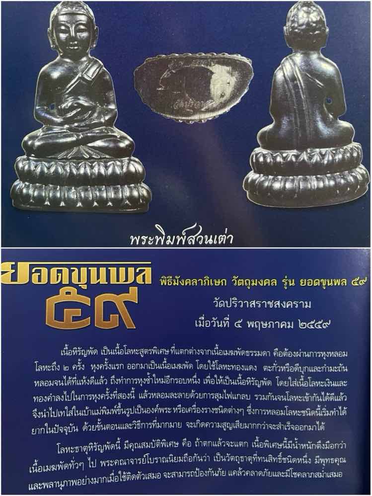 พระชัยวัฒน์ ยอดขุนพล พิมพ์สวนเต่า เนื้อหิรัญพัตร (เมฆพัตรสูตรพิเศษ หลวงพ่อสมชาย วัดปริวาส หุง2รอบ ผสม เงินและทองคำ) จัดว่าเป็นของหายากในสาย วัดปริวาส มีโค๊ด-มีเลข สร้างน้อย องค์นี้หมายเลข no.273 |