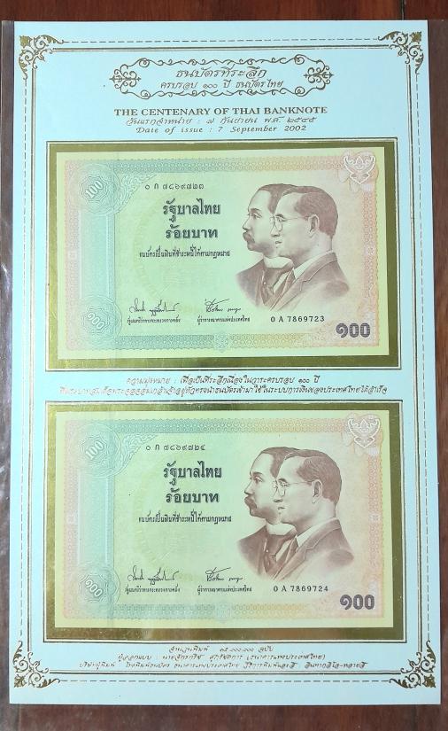 ชุดธนบัตรที่ระลึก ครบรอบ 100 ปี ธนบัตรไทย ปี 2545 เลขเรียง สวยค่ะ |