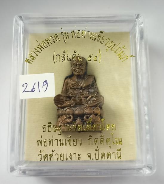 รูปหล่อบัวรอบ ลายกนกคชสาร รุ่น"กลันตัน ปี54" หลวงพ่อทวด พ่อท่านเขียว วัดห้วยเงาะ ปลุกเสกเดี่ยว (ขนาด3ซม.) เนื้อทองแดงมันปู เบอร์ 2619 พร้อมกล่องครับ