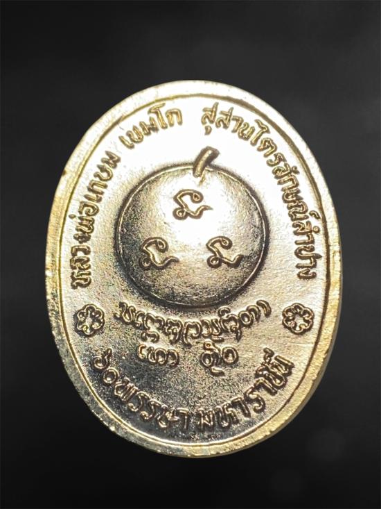 เหรียญหลวงพ่อเกษม เขมโก พิมพ์รูปไข่ 60 พรรษามหาราชินี ปี 2535 เนื้อกระไหล่ทองลงยา หายาก