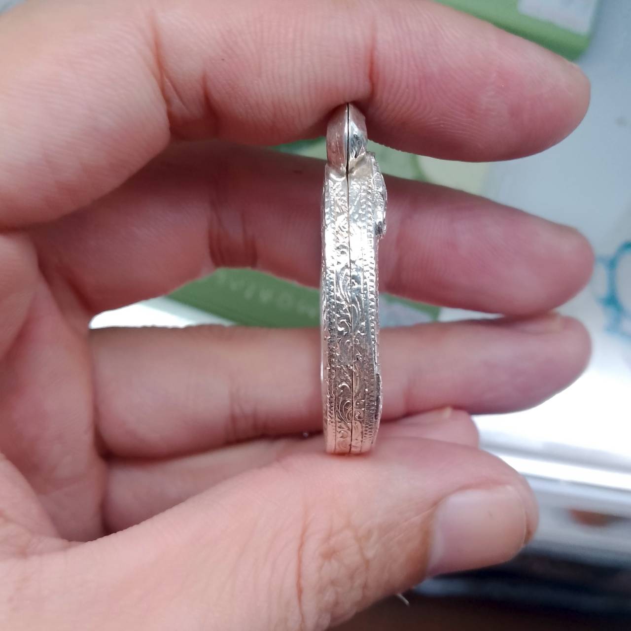 ตลับเงิน / กรอบเงิน แท้ ทรงเสมา ขนาดกระจก 2.3*3.2 หน้า 0.6 มิล |