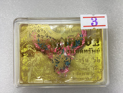 เคาะเดียวแดง 150 พญาครุฑมังรายศาสตร์ เศรษฐีอนันตทรัพย์ พระอาจารย์วิรุต วัดสันมะเหม้า จ.เชียงราย เนื้อชนวนทองขาว ลงยาองค์ชมพู สูง 4 ซ.ม. พิมพ์ใหญ่ กล่องเดิม |