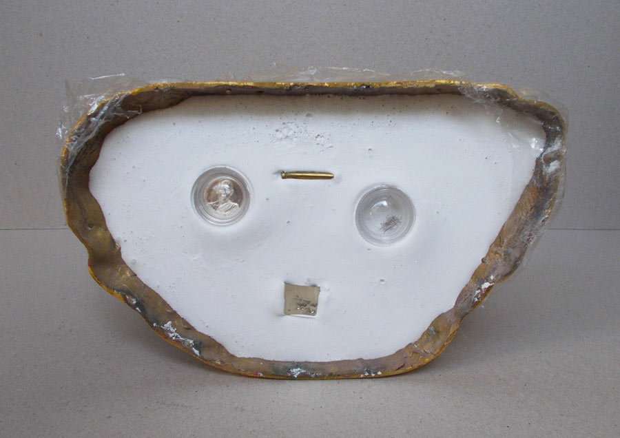 ใต้ฐานอุดปูน ฝังวัตถุมงคล ตลับบรรจุเหรียญกลม และ ตลับบรรจุเส้นเกศา