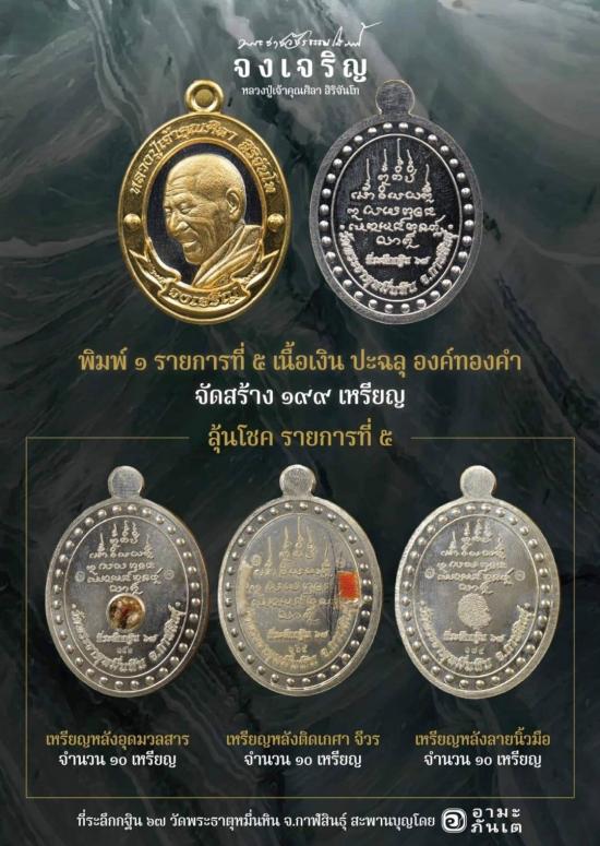รายละเอียด เหรียญ จงเจริญ ที่ระลึก กฐิน 67 หลวงปู่ศิลา หลวงปู่มหาศิลา สิริจันโท ปลุกเสก 3 วาระ รายการ 5 พิมพ์ 1 เนื้อเงินปะฉลุ องค์ทองคำ ชีลเดิม ลุ้นเลขสวย ลุ้นรายการเซอรไพรส์ สร้างน้อย แค่ 199 เหรียญ ได้ทองคำไปก็คุ้มแล้วครับ
