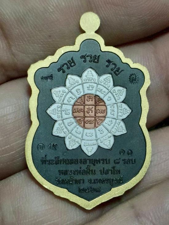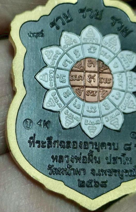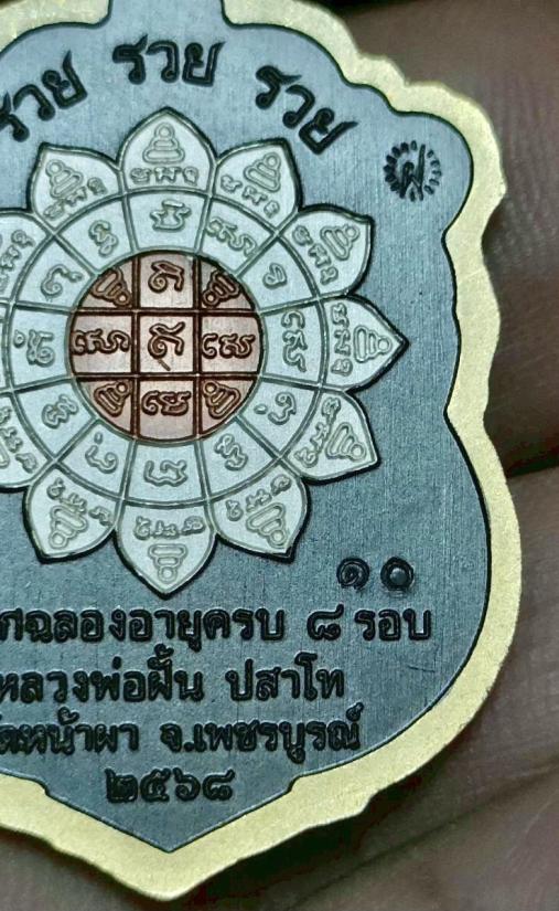 เหรียญเสมา รวย รวย รวย หลวงปู่ฝั้น ปสาโท วาระ 8 รอบ วัดหน้าผา จ.เพชรบูรณ์ ชุดนำฤกษ์ เนื้อแบล็คโรเดียม 4K หน้าเงิน ตอกโค๊ต นำฤกษ์ ตอก ฝ ตอก บ ตอก 4K ตอกหมายเลข 10 |