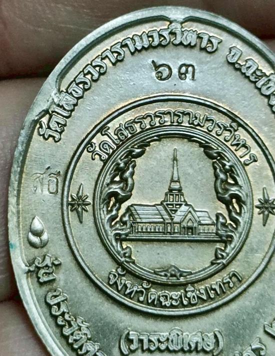 เหรียญหลวงพ่อโสธร เนื้ออัลปาก้าซาติน ลงยาน้ำเงิน หน้ากากเงิน ตอกโค๊ต สธ ตอกหมายเลข 63 วัดโสธรวราราม วรวิหาร จ.ฉะเชิงเทรา รุ่นประวัติศาสตร์ ครบรอบ 255 ปี (วาระพิเศษ)