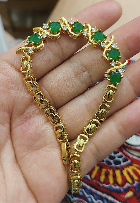 เทขาดทุน+ +เทปีใหม่++กำไลข้อมือมรกตยาว 7.นิ้ว งานจิวเวลลี่ชุบทองแท้ |