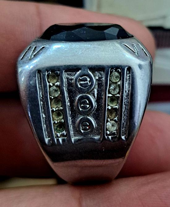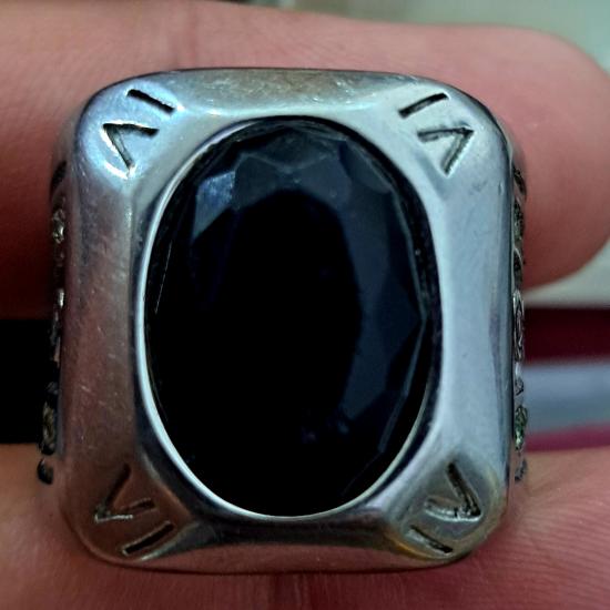 แหวนไซส์ใหญ่ไม่ทราบเนื้อหัวเป็นนิลดำหนักมาก32กรัม |