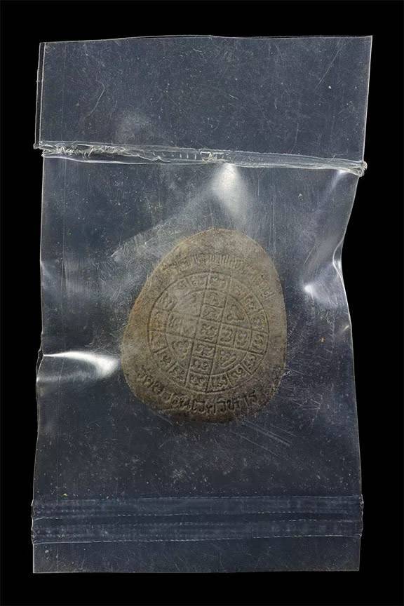 เคาะเดียว ในซีลเดิม(ซีลเก่าจนเริ่มปริแตก)พระปิดตายันต์ดวงเล็ก เนื้อผงใบลาน แช่น้ำมนต์ สอดตะกรุดเงิน สมเด็จพระญาณสังวร(เจริญ สุวัฑฒโน ปธ.๙) วัดบวรนิเวศวิหาร |