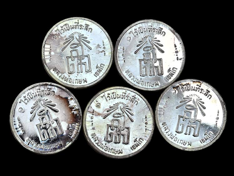 "5เหรียญ"เหรียญสตางค์ ร.5 ที่ระลึก หลวงพ่อเกษม เขมโก เนื้อเงิน