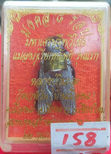 วัดใจ แมลงภู่ เรียกทรัพย์ รุ่นเเรก ครูบาวิมะละ เนื้อเงินยวง ปี59 โค๊ต 158 |