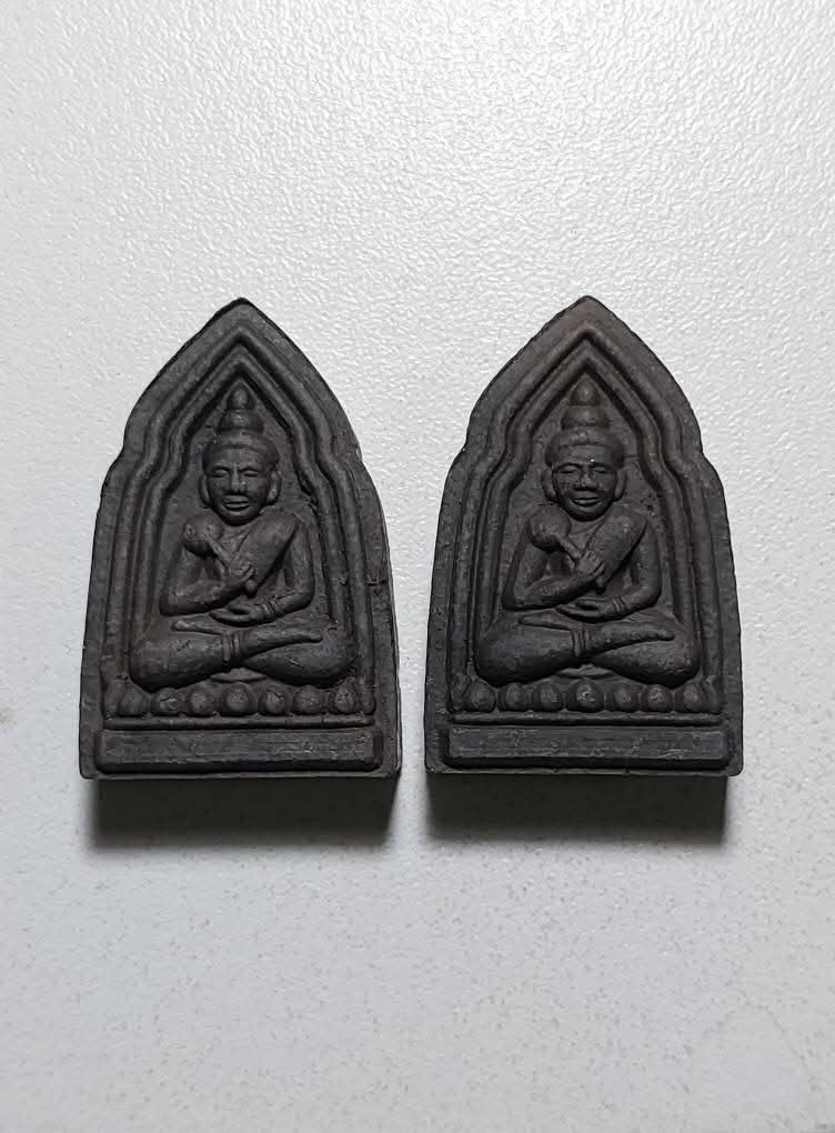 พระขุนแผนทรงดอกบัว เนื้อผงสีดำ 2 องค์ พระครูปืน วัดลาดชะโด จังหวัดอยุธยาฯ