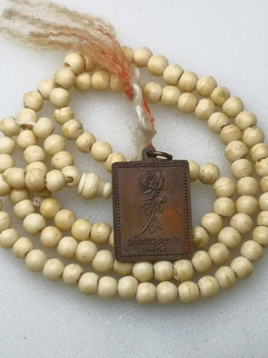 สร้อยประคำพร้อมเหรียญ หลวงพ่ออุตตมะ วัดวังวิเวการาม กาญจนบุรี หลังดอกกุหลาบ ห้างทองอุษา สภาพตามรูป ราคาเบาๆ |