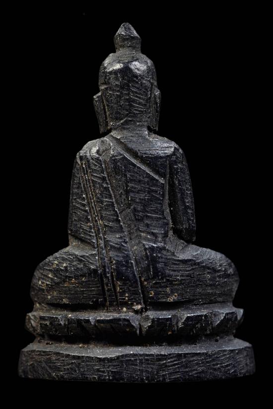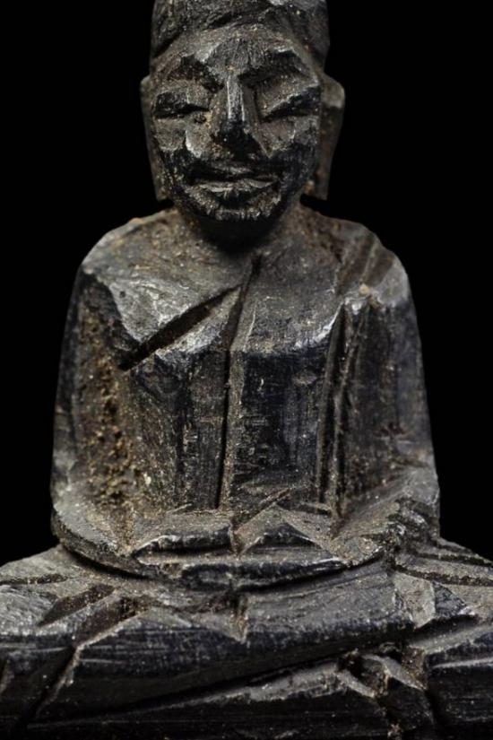 พระไม้แกะสลัก เนื้อดำ งานเก่าๆ "ขนาด ฐานกว้าง 1.9 cm สูง 3.2 ซม."