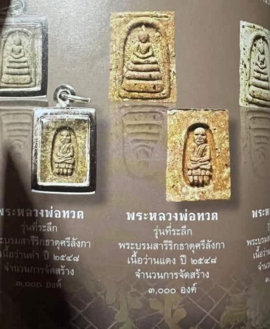 "10 องค์/พระหลวงปู่ทวดพิมพ์คะแนน(ไม่มีกล่อง)รุ่นที่ระลึกพระบรมสารีริกธาตุศรีลังกา ออกวัดห้วยมงคล ประจวบฯ ปี๔๘ เนื้อว่านแดงจำนวนสร้าง 3,000 องค์ วันนี้นำมาเปิดวัด 10 องค์ 130 แดงครับ(เอาไว้แจกลูกหลาน) |