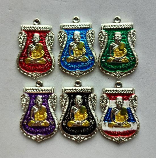 วัดใจเคาะเดียวแดงจ้า เหรียญเสมาหลวงปู่ทวดหลังขุนพันธ์ ภาคแรก เนื้อกะไหล่เงินลงยาแดง+เขียว+ฟ้า+ม่วง+ดำ+ลายธงชาติ จำนวน6เหรียญ เคาะเดียวแดงจ้า