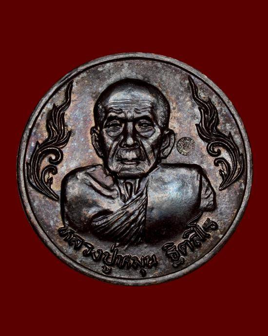 ((หมุนเงิน หมุนทอง หนุนดวง เสริมโชค เหรียญรวยรวย)) เหรียญหลวงปู่หมุน วัดบ้านจาน รุ่นเสาร์ห้า มหาเศรษฐี พิมพ์หลังขวัญถุง เนื้อทองแดง ปี 2543 จ.ศรีสะเกษ พร้อมบัตรรับรองมิต้องวัดใจพระแท้