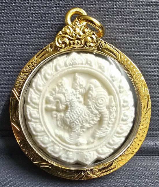 เหรียญเนื้อคชสารแกะสิงห์ เลี่ยมกรอบชุบทอง