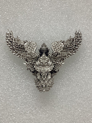 พญาครุฑมังรายศาสตร์ เศรษฐีอนันตทรัพย์ พระอาจารย์วิรุต วัดสันมะเหม้า จ.เชียงราย เนื้อซาตินเงิน พิมพ์เล็ก สูง 3 ซ.ม. กล่องเดิม |