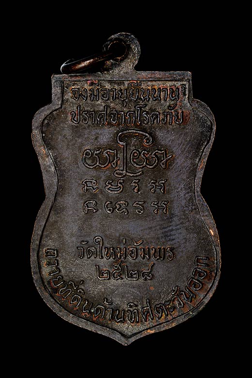 เหรียญเสมานั่งเก้าอี้ จึงมีอายุยืนนาน ปราศจากโรคภัย ถวายที่ดินด้านทิศตะวันออก วัดใหม่อัมพร ( เนื้อทองแดง ) พ.ศ.2528 ** 1 **