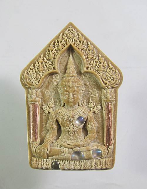 พระแก้วมรกต รุ่น เศรษฐีแก้วสารพัดนึก หลวงปู่ศิลา อธิษฐานจิตปลุกเสก วัดแจ้งใน จ.นครราชสีมา เนื้อผงน้ำมัน โบราณว่านเกษร ตะกรุดทองแดง 2 ดอก โรยพลอย No.42 พร้อมกล่องเดิม