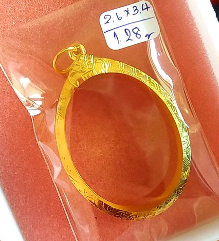 กรอบทองคำแท้ยกซุ้มสิงห์ ใส่เหรียญไข่หลวงพ่อคูณปี19/ปรกหลวงปู่ทิม/พ่อท่าคลิ้ง/อ.นำ/อ.ฝั้น2-7/เกจิอื่นๆจอใน2.6+3.4ซม.น้ำหนัก 1.28กรัม