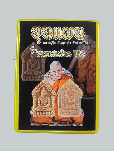 พระขุนแผน รุ่น "รวยแสนล้าน 168" หลวงปู่อิ่ม วัดทุ่งนาใหม่ นครศรีฯ เนื้อว่านเทาหลังฝังตะกรุดเงินคู่ เลขดค๊ต No 835 กล่องเดิมครับ