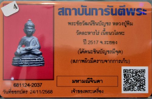 พระชัยวัฒน์ ชินบัญชร หลวงปู่ทิม วัดละหารไร่ เนื้อนวโลหะปี 2517 สวยเดิม พร้อมบัตรรับรองครับ
