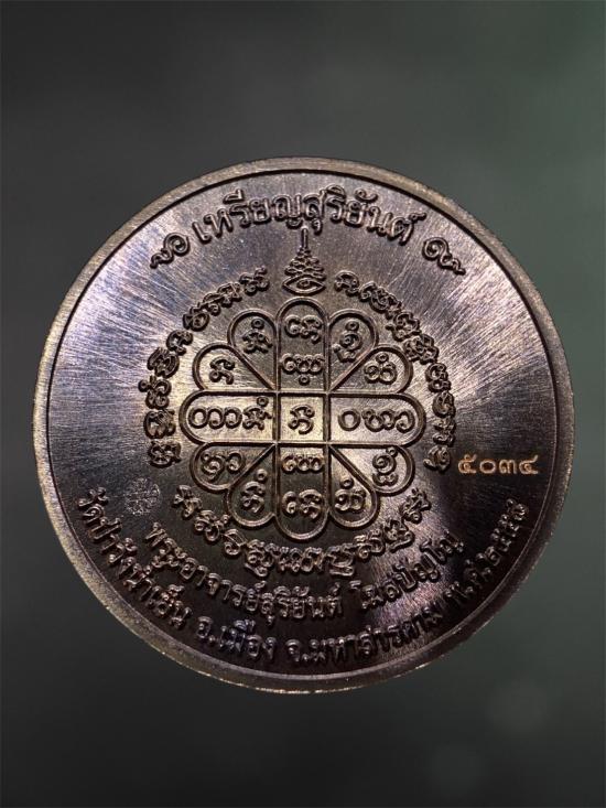 เหรียญรุ่นสุริยันต์ ปี2558 พระอาจารย์สุริยันต์ โฆสปัญโญ วัดป่าวังน้ำเย็น เนื้อชนวนพระกริ่ง |