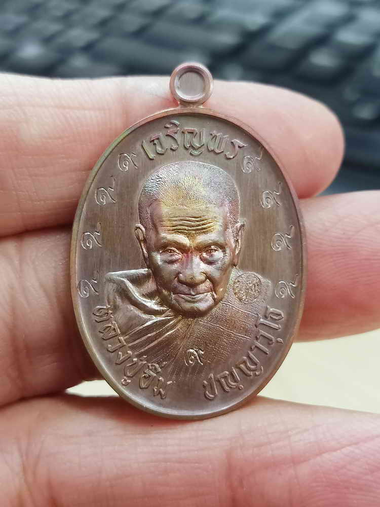 วัดใจ 100 วัดสร้าง เหรียญเจริญพร 9 รอบ ตรงวาระ หลวงปู่อิ่ม วัดทุ่งนาใหม่ จ.นครศรีธรรมราช 2568 ทองแดงผิวไฟ ตอก 9 รอบ หมายเลข 90 กล่องเดิม