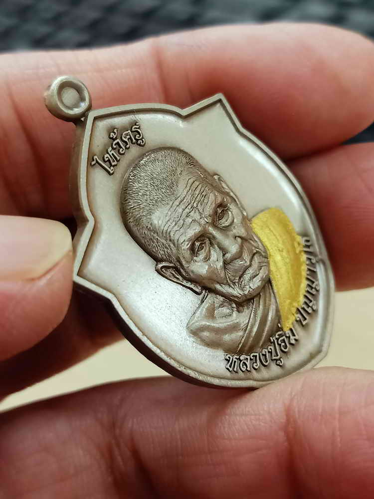 วัดใจ 100 เหรียญไหว้ครู หลวงปู่อิ่ม วัดทุ่งนาใหม่ จ.นครศรีธรรมราช 2567 อัลปาก้าซาติน จีวรปัดทอง หมายเลข 15 กล่องเดิม