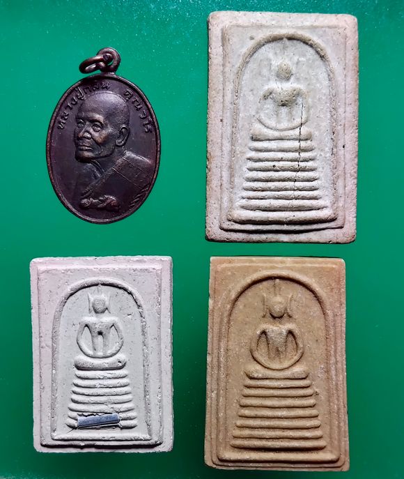 140 .- วัดใจ @@ ( เหรียญ + พระสมเด็จ หลวงปู่กลั่น คุณวโร วัดอินทราวาส , สมเด็จหลวงพ่อทองใบ วัดอบทม , สมเด็จ วัดเกศไชโย อนุสรณ์ 210 ปี ปี 41 ) เหมารวม 4 องค์ ค่ะ @@
