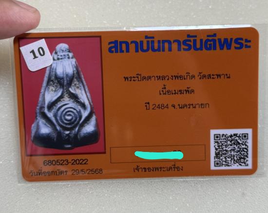พระปิดตาหลวงพ่อเกิด" วัดสะพาน" ปี2484. พร้อมบัตรGPRA.ครับ