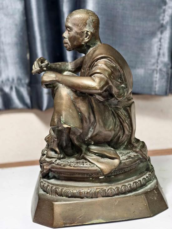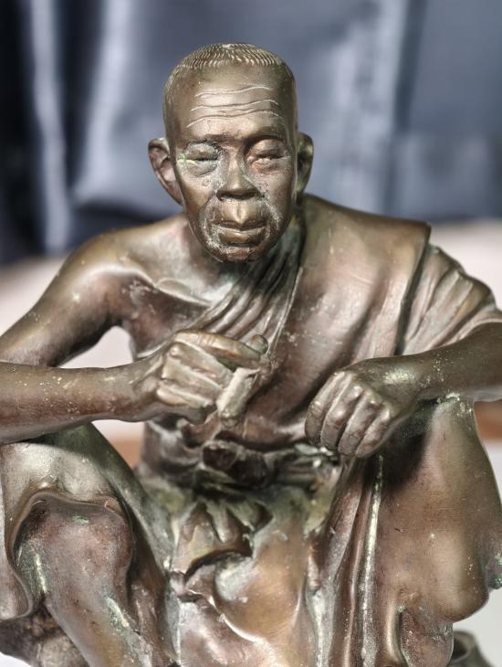 50.-/// พระบูชารูปเหมือนนั่งพื้นชันเข่า เท้าซ้ายทับเท้าขวา ( 5 นิ้ว ) พระญาณวิทยาคม คูณพันล้าน รุ่น ฉลองอุโบสถ วัดหนองหมูใต้อ.วิหารแดง จ.สระบุรี ( เนื้อโลหะ ) พ.ศ.2536