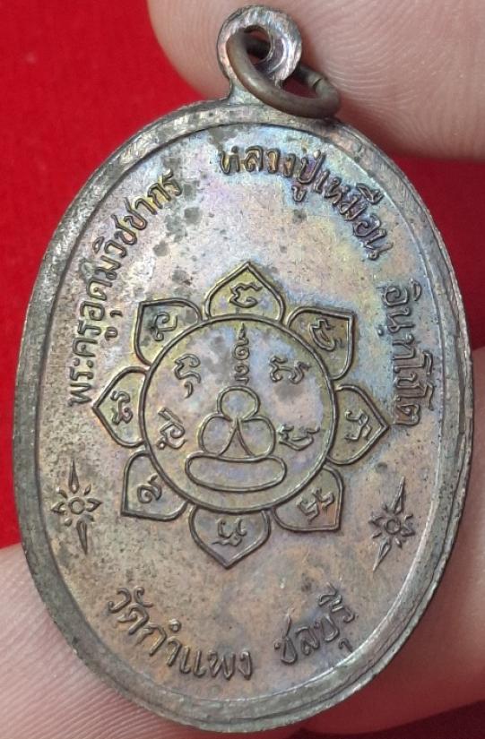 เหรียญหลวงปู่เหมือน วัดกำแพง จ.ชลบุรี ปี2527 เป็นเหรียญเนื้ทองแดง พิมพ์นั่งขาโต๊ะ เหรียญสภาพสวยมากๆบนพื้นผิวเหรียญยังเป็นสีรุ้งอยู่เลยนะครับ |