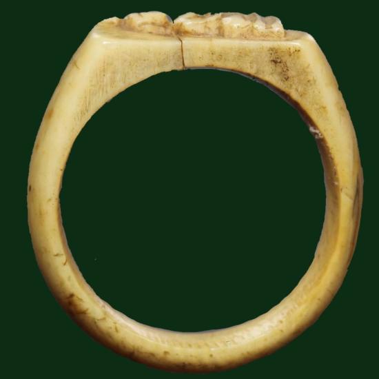 แหวนงาแกะ พระพุทธ หลวงพ่อเดิม วัดหนองโพ สภาพซ่อมชำรุดหักตรงคอพระ |