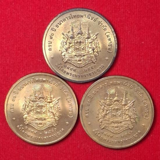 เหรียญร.5 ครบรอบ90ปี ธนาคารไทยพาณิชย์ ปี2540 เป็นเหรียญเนื้อทองแดงผิวไฟ มีมาทั้งหมด3เหรียญ สภาพสวยทุกๆเหรียญ และทุกเหรียญก็ยังบรรจุอยู่ในซองเดิมๆด้วยนะครับ |