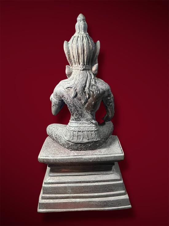 พระวิษณุกรรม ขนาดบูชา5นิ้ว เนื้อโลหะ ถือจอบและดิ่ง ถอดได้ ฐานผ้าทิพย์เศียรช้างเอราวัณ ผิวหิ้ง บ้านๆ ไม่ทราบที่ มีอายุ