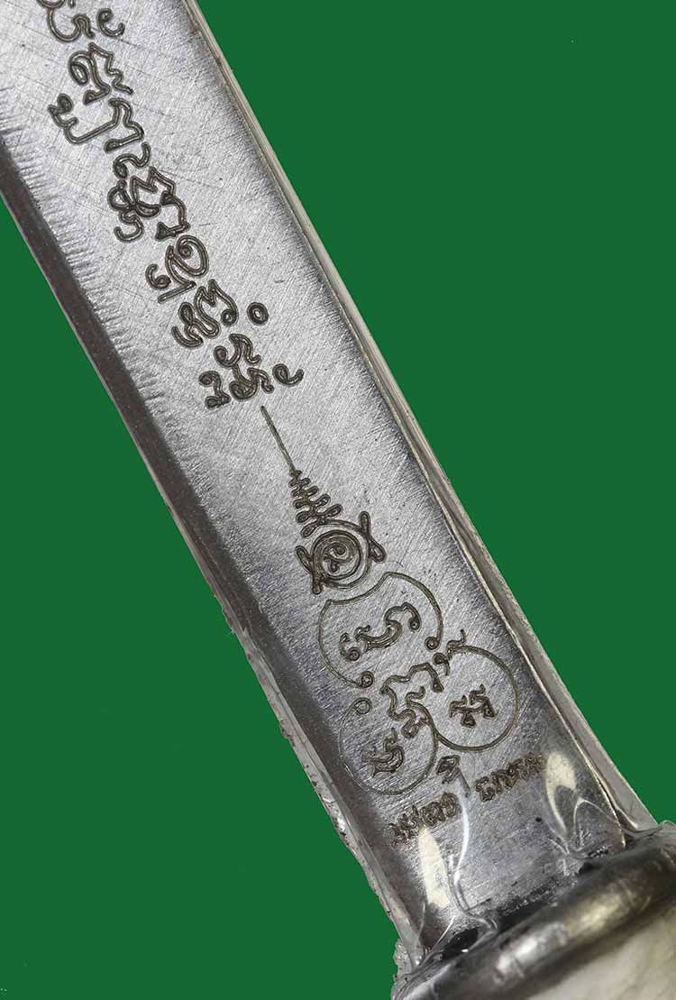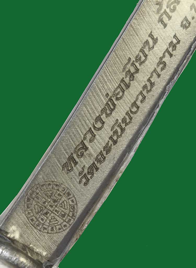 วัดใจ**เครื่องราง ดาบสายสิญจน์อาคม*{ หนังปะกำช้าง }*ขนาดรวมด้าม 6.นิ้ว หลวงพ่อเมียน กัลยาโณ วัดบ้านจะเนียง สร้าง 99 เล่ม สวย....เดิมๆครับ