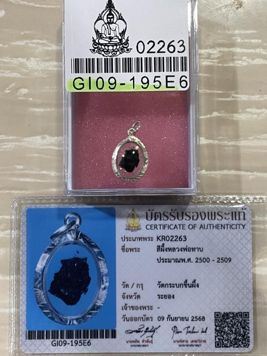 (เคาะแดง2900) +บัตรสมาคม สีผึ้งเขียวหลวงพ่อทาบ วัดกระบกขึ้นผึ้ง เลี่ยมเงิน