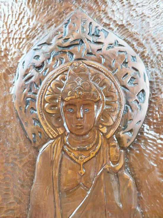 พระโพธิสัตว์ไม้เก่าแกะสลัก จากญี่ปุ่น เนื้อไม้ศักดิ์สิทธิ์ 12 X 14 นิ้ว หนา 1 นิ้ว