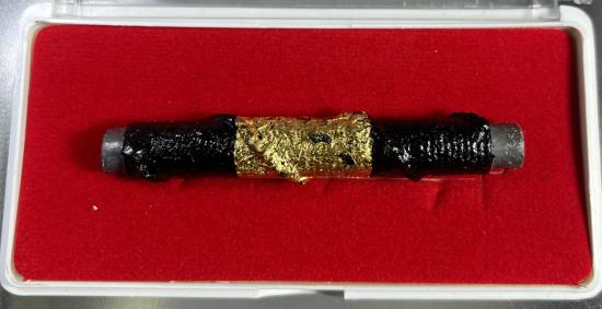 ตะกรุดตรีนิสิงเห เขาอ้อ พ่อท่านจรูญ วัดเขาเมืองเก่า พัทลุง ความยาว 3 นิ้ว -เนื้อตะกั่วลงรักปิดทอง สร้าง 999 ดอก