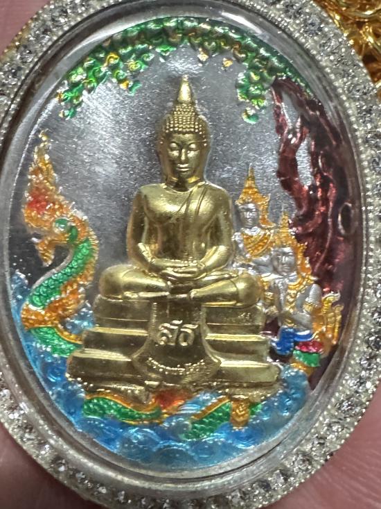 เหรียญหลวงพ่อโสธร เนื้อเงินลงยาเครื่องทรงหน้ากากทองคำแท้ หมายเลข 8 เลี่ยมกรอบทองอิตาลีพร้อมสร้อยทองอิตาลี